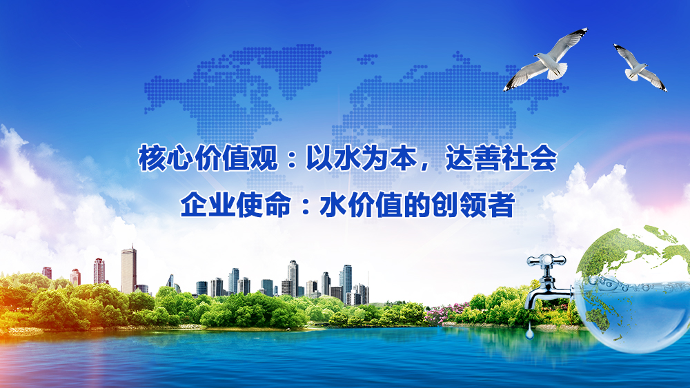 我們堅持以水為載體,以最佳服務創造價值,以最佳服務創造業績,以最佳服務促進人水和諧發展,做好水的文章,弘揚水的精神,光大水的文化,與水共生,生生不息,共襄繁榮。未來五至十年,努力成為一家專業化、多元化、國際化環保綜合服務商。