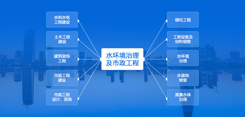 市政公用工程施工總承包壹級(jí)、裝飾工程專業(yè)承包貳級(jí)、屋房建筑工程施工總承包叁級(jí)、水利水電總承包三級(jí)