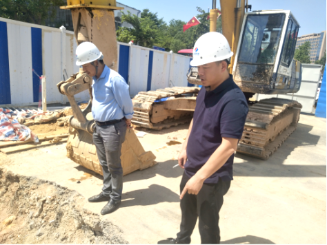 公司董事長方學全,副總經理張慶節、何旋,總經理助理胡小華等在假期親臨現場,安排指導施工,督促檢查安全生產工作,對道路開挖、基坑支護、機械使用等“高危”項進行逐一排查,強化全體一線人員的安全意識,確保安全生產工作萬無一失。