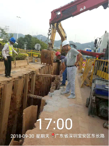 為彌補臺風“山竹”帶來的工期延誤,公司茅洲河綜合治理項目補水、正本清源兩個項目組在董事長方學全的親自帶領下,利用中秋、國慶期間“車流少、行人少”等有利條件,分秒必爭搶工期。公司為此充分配置了各類資源,增加施工人員和設備,多個站點、多條管線同時施工,力爭在設定的時間節點內完成目標任務。