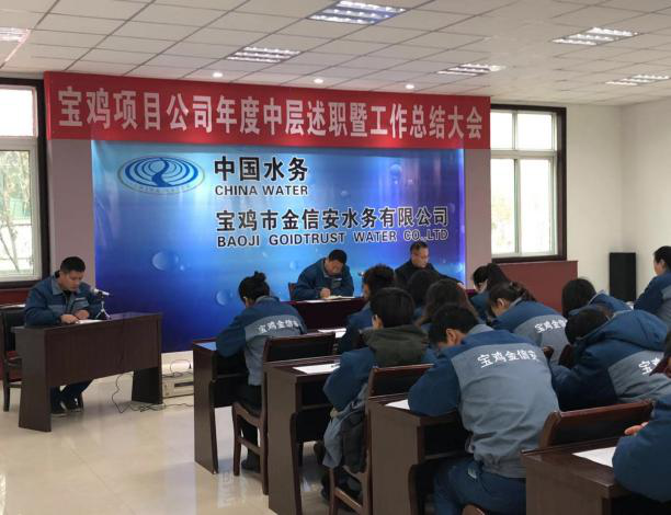 為對寶雞項(xiàng)目公司(十里鋪污水廠、陳倉污水廠)2018年工作進(jìn)行全面回顧,發(fā)現(xiàn)問題、總結(jié)得失,同時(shí)也為了進(jìn)一步激發(fā)中層干部履職盡責(zé)、干事創(chuàng)業(yè)的積極性,滿足寶雞公司良好發(fā)展形勢下對中層干部的新要求,12月21日上午,在寶雞十里鋪污水廠會議室,召開了寶雞項(xiàng)目公司年度工作總結(jié)暨中層述職大會。寶雞公司領(lǐng)導(dǎo)、中層干部及員工共計(jì)66人參加了大會。