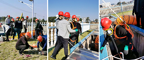 演練過程中,操作人員拉起安全警戒線、進(jìn)行強(qiáng)制通風(fēng)、開展氣體檢測、填寫下井作業(yè)票并報批,隨后依次開展了人員下井、井內(nèi)清淤、淤泥提升、淤泥堆放及外運(yùn)、人員升井、模擬人員受傷現(xiàn)場急救處置、拆除警戒線、清理現(xiàn)場、現(xiàn)場點評等一系列環(huán)節(jié)。整個過程,全員服從指揮、配合密切,對模擬事故反映迅速、判斷準(zhǔn)確,切實加深了對有限空間作業(yè)危害性的認(rèn)識,提高了應(yīng)急處置能力和反應(yīng)速度,達(dá)到了預(yù)期效果。