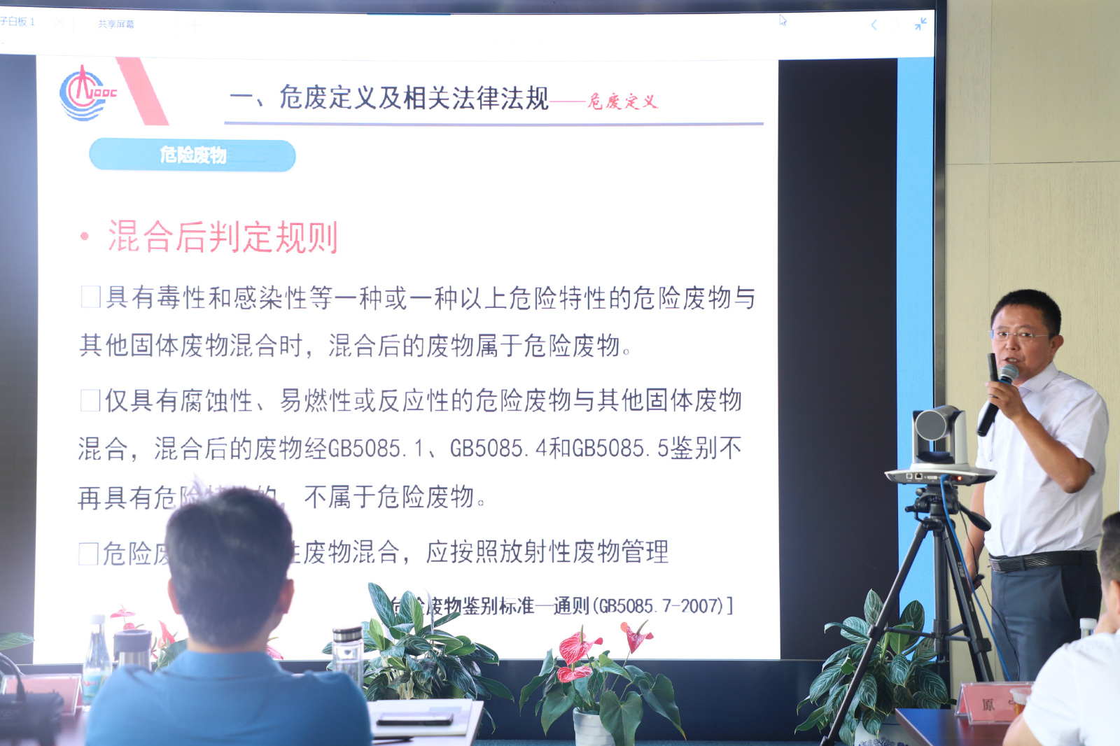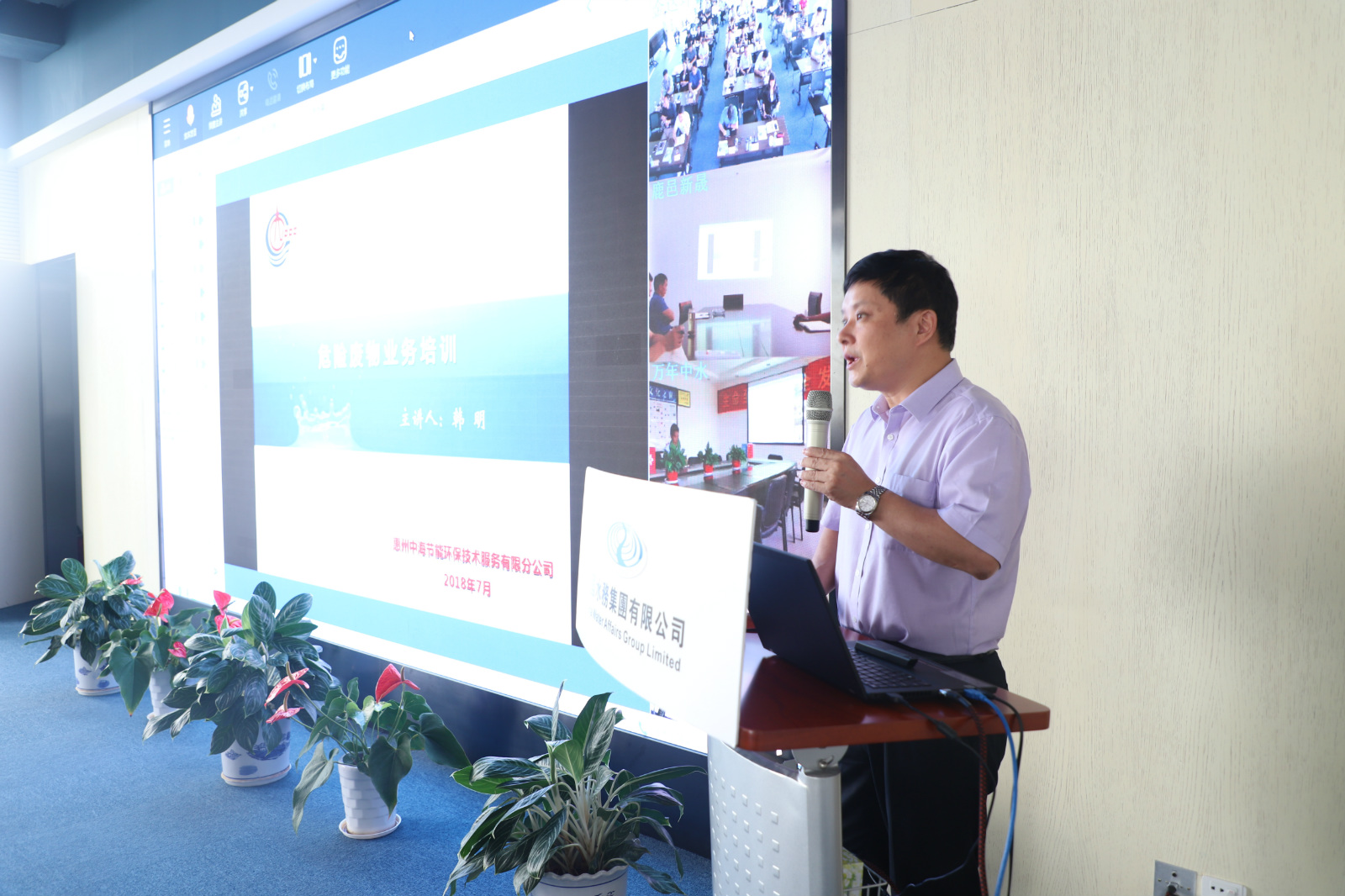 這次培訓主要圍繞危廢、環衛兩大業務展開。國家溢油應急專家、惠州中海節能環保技術服務有限公司總經理韓明主講了危廢行業業務拓展及管理。他生動地講授了危險廢棄物“七宗罪”、危廢定義及法律法規、危廢分類及管理、石化園區危廢一體化管理服務等內容。