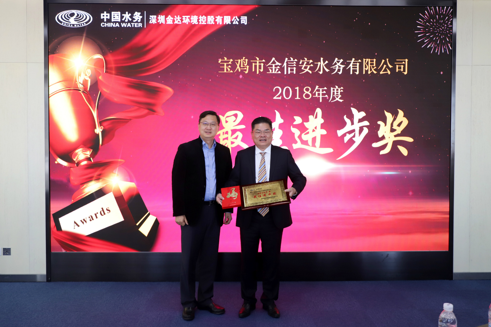 葉波清副總經理宣讀了表彰決定。與會領導為獲得“金達標兵”、“優秀管理者”等稱號的先進個人和獲得“市場開拓獎”、“最佳團隊獎”、“最佳進步獎”、“最佳效益獎”的先進單位頒獎。寶雞金信安總經理付林、銀龍建設行政人事部經理胡穎英、中海環保項目組工程師王越等獲獎代表作了發言。
