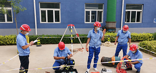 ↑ 金達環境旗下的天津重科水處理有限公司開展作業演練、應急處置和有限空間搶險維修等。