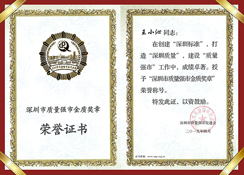 5月7日下午,第二屆深圳市品牌建設(shè)促進大會暨深圳經(jīng)濟特區(qū)建立40周年深圳質(zhì)量建設(shè)功勛人物表彰大會隆重召開;深圳市政協(xié)副主席徐友軍,深圳市政府原副市長陳彪,深圳市質(zhì)量強市促進會會長、原招商銀行行長馬蔚華等出席大會并為獲獎?wù)哳C獎。中國水務(wù)集團有限公司董事、深圳金達環(huán)境控股有限公司董事長王小沁女士獲頒“深圳經(jīng)濟特區(qū)建立40周年深圳質(zhì)量建設(shè)功勛人物”榮譽稱號。